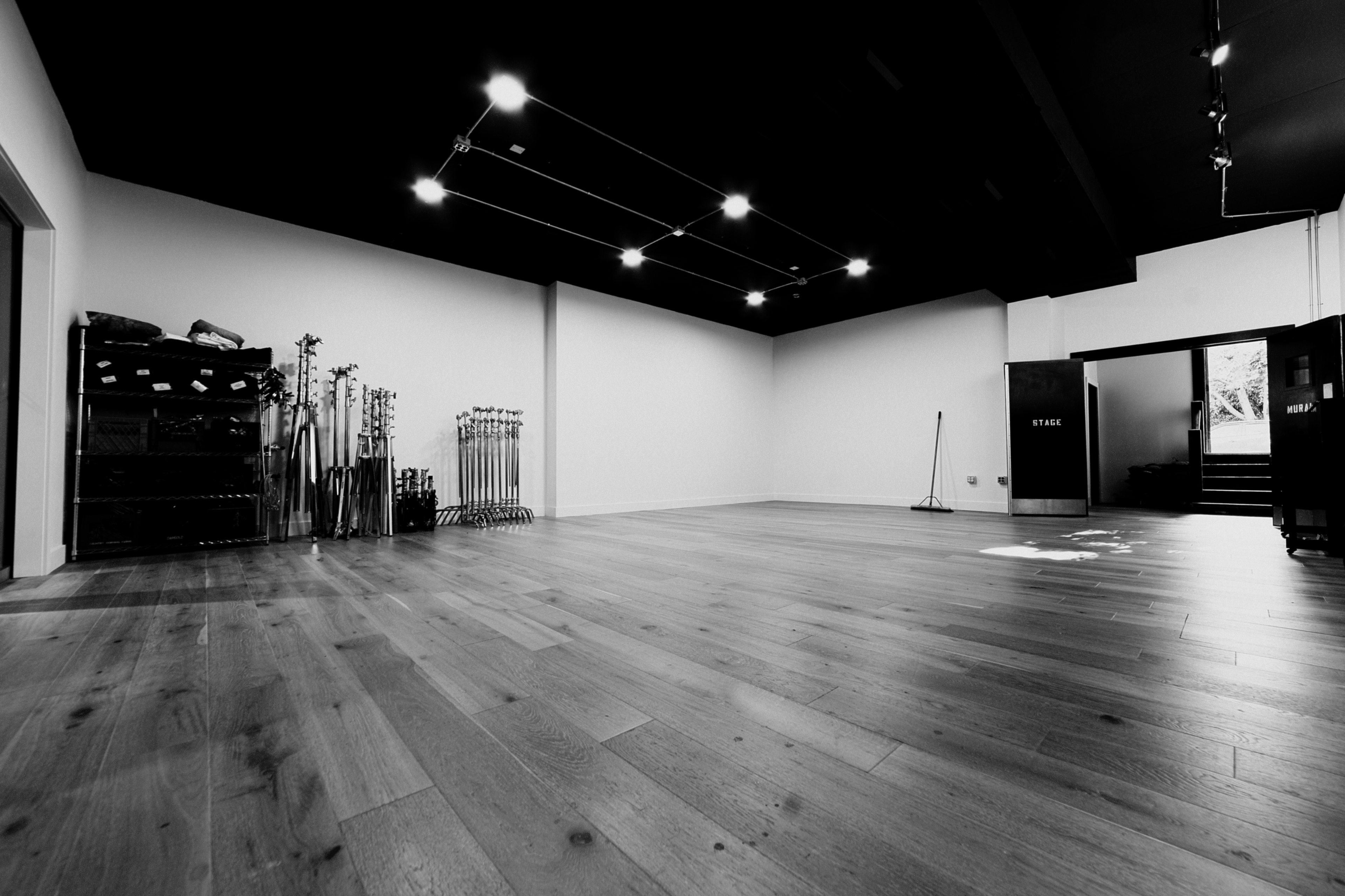 800 square feet of shooting space with 12 foot high ceilings and 60 amps of power for your next film, photoshoot, or visual creation.